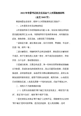 2022年市委书记民主生活会个人对照检查材料(全文3643字) 根据省委会议安排,现将个人对照检查情况汇报如下: 一、上年度民主生活会整改情况 上年度领导班子共对照检查出问题12条,结合各方面征求到的意见建议梳理汇总20条。市委领导班子坚持照单全收,对问题应改必改、能快则快,见实见效。主要采取了四项措施: 一是制定方案,建立整改台账,实行月督查、季通报、年总评,完成一项,销号一项; 二是分解责任,明确时间节点和目标要求,整改责任分解到班子成员,班子主要负责人负第一责任,班子成员负直接责任,齐抓共管,分工合作,推动整改落实; 三是建立机制,注重总结反思,将一些务实管用的整改措施确立为...