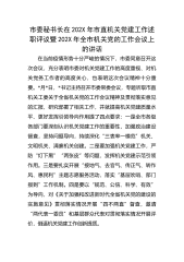 市委秘书长在202X年市直机关党建工作述职评议暨202X年全市机关党的工作会议上的讲话在当前疫情形势十分严峻的情况下,市委同意召开这次会议,充分表明市委对机关党建工作的高度重视、对机关党务工作者的高度关心,也表明这次会议精神十分重要。*月*日,*书记主持召开市委常委会议,专题听取市直机关工委关于全省机关党的工作会议精神及贯彻落实意见的汇报,研究部署了相关工作,并就提高机关党建质量水平、更好发挥引领导向作用提了四点要求:一是全市各级各部门要深刻认识机关党建工作的重要性,加强政治建设督查,坚持问题导向,持续深化“三表率一模范”机关、文明机关、清廉机关创建。二是要加强机关党建工作,严防“灯下黑”“两...