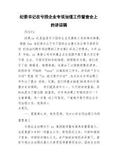 纪委书记在亏损企业专项治理工作督查会上的讲话稿同志们:按照xx纪委监委关于国有企业反腐败工作的相关部署,根据《xx省纪委办公厅关于国有企业重大非正常亏损背后违纪违法问题专项治理的工作方案》有关工作要求,今年xx月开始,xx集团公司对所属企业全范围开展了重大非正常亏损企业、亏损项目的系统清理。按照既定方案,我们进行了前期摸底、梳理排查,也提出了止损挽损整改清单。前段时间开始的“xxxx"以案促改工作中,涉及的“五大行动”里面的“xx能力提升行动”,也对本次专项治理工作作出了重点安排。近期,我们将重点抽查30家单位开展重点走访调研,你们就是其中之一。今天的实地督查,目的也是为了强化跟踪督导,对专项...