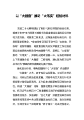 以“大督查”推动“大落实”经验材料 党的二十大鲜明提出了新时代新征程党的使命任务,明确了未来*年乃至更长时期党和国家事业发展的目标任务和大政方针。对督查工作来讲,这既是新目标新方向,也是新要求新使命。*省始终牢记习近平总书记“走在前、开新局”的殷切嘱托,高度重视和充分发挥督查工作在推进落实党的路线方针政策中的重要作用,坚持以“大督查”推动“大落实”,探索形成党政督查一体、左右协调联动上下贯通融合的“大督查”工作格局,凝心聚力把习近平总书记为*擘画的宏伟蓝图变为美好现实。 强化政治引领,准确把握新时代“大督查”内涵要求 “大督查”之大,在于政治站位要高。习近平总书记指出,只有站在政治的高度...