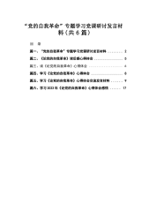 《论党的自我革命》、《领袖新时代中国特色社会主义思想的世界观和方法论专题摘编》、《领袖关于调查研究论述摘编》读后感学习体会“习语”润人心,“著作”启人智。领袖总书记《论党的自我革命》、《领袖新时代中国特色社会主义思想的世界观和方法论专题摘编》、《领袖关于调查研究论述摘编》等3种学习材料在全国发行,收录、擴编了党的十八大以来领袖总书记有关报告、讲话、文章、指示、批示等重要文献,其中部分内容是第一次公开发表。该套学习材料具有很强的政治性、思想性、指导性,为我们开展好主题教育指明了前进方向,提供了根本遵循。“行而思,思必有得;思而行,行必有方。”广大基层党员干部要深思细悟《论党的自我革命》等主题教育...