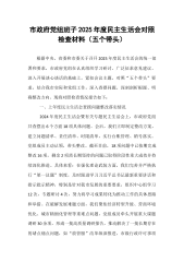 市中医院班子2025年带头严守政治纪律和政治规矩方面等“四个带头”领导班子对照检查材料6140字范文按照市卫健委和市委组织部关于开好2024年度民主生活会的通知要求,市中医院领导班子高度重视,认真学习贯彻习近平新时代中国特色社会主义思想,深入学习党的二十大和二十届二中、三中全会精神,认真研读新修订的《中国共产党纪律处分条例》,广泛征求意见建议,深入开展谈心谈话,认真撰写对照检查材料。现将有关情况报告如下:一、上年度民主生活会整改落实情况按照上级部署要求,医院党委班子对2023年度民主生活会查摆出的问题,高度重视,狠抓整改落实。一是强化组织领导。成立整改工作领导小组,制定整改工作方案,对查摆出的...