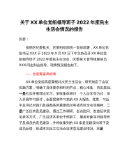 20230312:关于XX单位党组领导班子2022年度民主生活会情况的报告