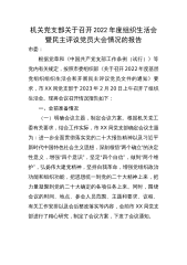 【组织生活会】机关党支部关于召开2022年度组织生活会暨民主评议党员大会情况的报告