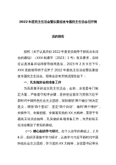 XX机关党支部关于召开本年度组织生活会暨民主评议党员大会情况的报告市委:根据党章和《中国共产党支部工作条例(试行)》等党内有关规定,按照市委组织部《关于召开2022年度基层党组织组织生活会和开展民主评议党员文件的通知》要求,市××局党支部于2023年2月20日上午召开了组织生活会。现将会议召开情况报告如下:一、会前准备情况(一)明确会议主题,制定会议方案。根据机关党工委有关要求,结合工作实际,市××局党支部确定会议主题为:进一步全面贯彻落实党的XX大报告精神以及习近平新时代中国特色社会主义思想,深刻领悟“两个确立”的决定性意义,增强“四个意识”,坚定“四个自信”,做到“两个维护”,弘扬伟大建党...
