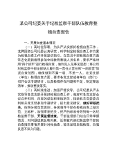 关于某县纪委监委领导关于教育整顿管党治党责任自查报告开展纪检监察干部队伍教育整顿是习近平总书记亲自点题亲自部署的重大政治任务,是纪检监察机关做到“打铁必须自身硬”的务实有效举措,是发挥职能作用、扛起职责使命的现实需要。通过近一段时间的学习培训,我充分认识到开展这次教育整顿的重要性、必要性和紧迫性。按照省市县纪检监察干部队伍教育整顿实施方案要求,我深入学习领会习近平总书记关于加强纪检监察干部队伍建设的重要讲话和重要批示指示精神,重点对照党章党规以及纪检监察干部队伍教育整顿自查自纠找出的问题、开门纳谏反馈的问题、谈心谈话征求意见等进行梳理汇总,深刻查找自身存在的差距和不足,明确了整改落实的具体措施...
