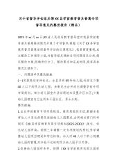 关于省督导评估组反馈XX县学前教育普及普惠专项督导意见的整改报告(精品)2025年xx月xx日,XX省人民政府教育督导室对我县学前教育普及普惠推进情况开展了专项督导,根据《关于XX县学前教育普及普惠省级督导评估的反馈意见》,我县高度重视,成立整改工作领导小组,对督导组反馈的各项问题逐条分析,制定整改方案,明确责任分工、整改要求和完成时限,现将具体情况汇报如下。一、问题清单及整改措施(一)发展规划有待优化。全县共有69所幼儿园,还存在少数40人以下的民办幼儿园。未制定出台并动态调整学前专项布局规划。部分幼儿园室外活动场地未设置沙区水区;少数幼儿园教室内卫生间未干湿分区、男女分厕。整改措施:1.出...