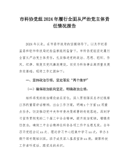 市科协党组2024年履行全面从严治党主体责任情况报告