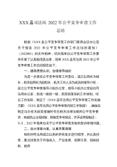 XXX县司法局2022年公平竞争审查工作总结根据《XXX县公平竞争审查工作部门联席会议办公室关于报送2022年公平竞争审查工作总结的通知》(2022003)的文件精神,结合我单位公平竞争审查工作要求开展了认真梳理及自查,现将XXX县司法局2022年公平竞争审查工作总结报告如下。一、提高思想认识,加强领导组织为进一步落实公平竞争审查工作责任,成立以局长为组长,相关副局长为副组长,机关工作人员为成员的领导小组,设立公平竞争审查领导小组办公室,领导小组办公室设在司法局办公室,形成一级抓一级,层层抓落实的工作体制。结合工作实际,制定了《XXX县司法局公平竞争审查工作实施方案》《XXX县司法局公平竞争审...