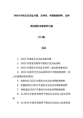 (11篇)2022年民主生活会方案、主持词、对照检查材料、点评、情况报告全套材料汇编全辑