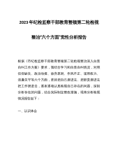 2023年纪检监察干部教育整顿第二轮检视整治“六个方面”党性分析报告根据《市纪检监察干部教育整顿第二轮检视整治深入自查自纠工作方案》要求,我结合学习和自查自纠情况,对照信仰缺失、政治动摇、放弃原则、作风不正、滥用权力、清廉失守等六个方面,坚持把自己摆进去、把职责摆进去把工作摆进去,逐条逐项认真检视自己存在的问题,深刻分析存在的问题,结合实际制定整改措施,现将分析检视情况报告如下:一、认识体会开展纪检干部队伍教育整顿,是以习近平同志为核心的党中央为加强纪检监察干部队伍建设作出的一项重大工作部署。作为一名基层党支部纪检委员,我深刻认识到开展纪检监察干部队伍教育整顿是坚定不移全面从严治党的必然要求,...