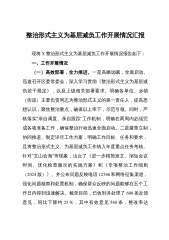 镇群众身边不正之风和腐败问题集中整治工作情况报告为深入贯彻落实中国共产党第二十届中央纪律检查委员会第三次全体会议精神,镇按照县委、县纪委监委的相关工作部署,坚决从政治上把握和推动整治群众身边不正之风和腐败工作问题,根据《2024年*县纪检监察机关开展群众身边不正之风和腐败问题集中整治工作方案》,镇围绕13个整治重点,组织各村(社区)、镇直各部门对2023年1月以来相关领域存在的突出问题进行全面自查自纠,截至目前共建立重点问题清单*个,其中涉及乡村振兴领域的问题*个、涉粮补贴的问题*个、加重基层负担方面的问题*个、养老社保领域问题*个、便民窗口服务问题*个。按照“严查快处”的工作原则,镇纪委充分...