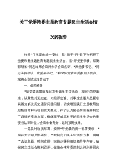 XX党委:根据《XX关于印发<党史学习教育专题组织生活会实施方案>的通知》要求,XX公司各党支部聚焦主题,对照开展党史学习教育、联系服务党员职工等方面,深入检视剖析、深挖问题根源、明确努力方向,认真开展批评与自我批评,分别于7月下旬、8月上旬召开了党史学习教育专题组织生活会,现将有关情况报告如下。一、会前准备情况为开好这次专题组织生活会,公司党委及各党支部进行了充分认真的会前准备。(一)认真制定方案,全力保障落实。公司党委紧扣这次组织生活会主题,研究制定会议方案,重点把握会前学习研讨、征求意见建议、开展谈心谈话、准备检视剖析材料,以及会议召开、会后落实整改等6个关键环节,要求各党支部及时将相关...