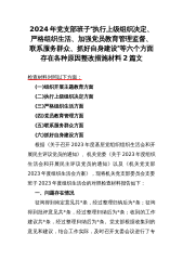 2024年党支部班子“执行上级组织决定、严格组织生活、加强党员教育管理监督、联系服务群众、抓好自身建设”等六个方面存在各种原因整改措施材料2篇文