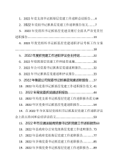 1.2022年党支部书记抓基层党建工作述职总结报告.....42.2022年党组书记抓基层党建工作述职报告范文........73.2022年党组织书记抓基层党建及履行全面从严治党责任述职报告...................................................................................134.2022年度党组织书记抓基层党建述职评议考核工作方案.............................................................................................