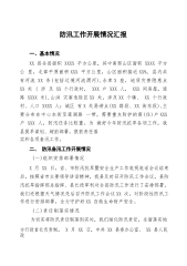 防汛工作开展情况汇报一、基本情况XX县全县面积XXXX平方公里,其中南部山区面积XXXX平方公里,北部平原面积XXX平方公里,山区面积接近XX%,县内共有河流XX条(包括过境河流渭河),水库X座,地质灾害隐患点XX处(涉及XX个行政村,XXX户XXX人,XXX间房屋,道路XXXX米),山洪灾害危险区XX处,涉及XX个镇、XX个行政村、人口XXXX人;城区有X处易涝点(XX路段、XX街东段),主要分布在中心东街至莲湖路一带,需要重点防护的商(住)户XXX户XXX人,防汛任务比较重。为做好今年防汛抗旱各项工作,我县提早谋划、超前部署,狠抓责任落实和各项备汛工作。二、防汛备汛工作开展情况(一)组织安...