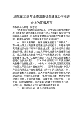 法院在2024年全市清廉机关建设工作推进会上的汇报发言稿
