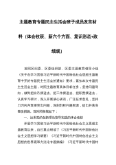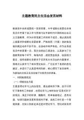 主题教育专题民主生活会班子成员发言材料(体会收获、新六个方面、意识形态+政绩观) 按照区纪委、区委组织部、区委主题教育领导小组《关于在学习贯彻习近平新时代中国特色社会思想主题教育中开好专题民主生活会的通知》要求,紧扣本次专题民主生活会主题,对照主题教育具体目标任务,坚持问题导向,做到把自己摆进去、把工作摆进去、把职责摆进去,认真学习研讨,深入开展谈心谈话,广泛征求意见,坚持刀刃向内查摆突出问题,深刻剖析问题根源,提出并落实整改措施。现对照检视如下: 一、运用党的创新理论指导实践的体会收获 开展学习贯彻习近平新时代中国特色社会主义思想主题教育以来,自己重点研读了《习近平新时代中国特色社会主...