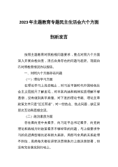 2023年主题教育专题民主生活会个人对照检查剖析材料(领导班子成员个人发言稿提纲)