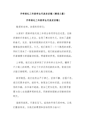 初中家委会主任的发言稿范文(3篇)初中家委会主任的发言稿1各位爸妈:大家好!望子成龙,盼女成风是我们每个爸妈的愿望,青出之于蓝而胜于蓝是每个老师对学生的殷切希望。因此,要想我们的孩子安全、健康的成长,离不开学校这片沃土,离不开园丁的辛勤培育,更不能缺少家庭的关怀。家校携手,共同托起明天的太阳。学校精心的哺育我们的孩子,那么我们做爸妈的应该做些什么呢?我个人认为应作以下几方面的工作:一、重视孩子的身心健康“健康”不仅指身体的健康,更为重要的是孩子的心理健康。希望各位爸妈关注学生的身心健康,做好孩子的表率。孩子们常常会有一些不正常的想法,再加上学业上的种种压力和生活上的失败,容易产生心理障碍和行为...