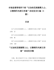 市场监督管理所干部“以加快发展凝聚人心、以整顿作风树立形象”活动发言汇编(3篇)