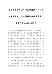 在县委理论学习中心组主题教育“发扬自我革命精神,坚定不移推动高质量发展”专题学习会上的交流发言稿