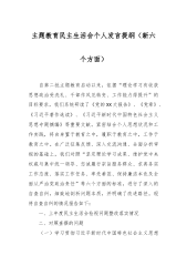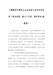 主题教育专题民主生活会班子成员发言稿材料(体会收获、新六个方面、意识形态+政绩观)