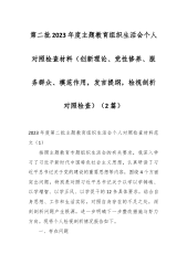 (2篇)第二批2023年度主题教育组织生活会个人对照检查材料(创新理论、党性修养、服务群众、模范作用,发言稿提纲,检视剖析对照检查)