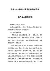 关于2023年第一季度民政领域安全生产会上的发言稿