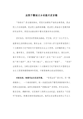 法院干警助力乡村振兴发言稿“奶奶灰”是衣服的颜色,更是代表理性严密的法律思维,是法院人行走的铭牌,是法院人独特的荣耀,是法院人青春奋斗里最形象的司法符号,更是见证着法院干警为民服务所走过的路。坚定信念,筑牢坚实思想政治基础。守正道,护卫一方公平正义,就要有扎实的理论功底。要在生活、工作中深入学习宣传贯彻党的二十大精神和习近平新时代中国特色社会主义思想,在学懂弄通上下功夫,勤学原文、深悟原理,不断提升自身政治素质能力。通过自学、集中学等方式,不断增强"四个意识",坚定“四个自信”,坚决做到“两个维护”,捍卫“两个确立”。通过乡村“课堂”、“坝坝”法庭等方式,为群众宣讲党的二十大精神及习近平新时代...