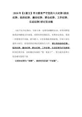 2024年“在政治纪律、廉洁纪律、群众纪律、工作纪律、生活纪律等方面”研讨材料发言稿与党纪学习教育纪律教育心得体会发言稿【4篇文】