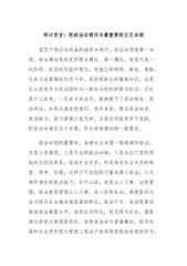 卫健系统理论学习中心组2024年第一次集中学习发言材料 根据会议安排,我就从严治党、作风建设、效能革命三个方面,结合近段时间的学习,谈谈自己的几点体会: (一)提高政治站位,压实全面从严治党主体责任。一是坚持把党的政治建设摆在首位,始终坚持以习近平新时代中国特色社会主义思想为指导,自觉把习近平新时代中国特色社会主义思想运用到卫生健康工作实践之中。二是严格履行全面从严治党“第一责任人”责任,带头旗帜鲜明讲政治,严格落实“四个亲自”,坚决起好带头作用坚决贯彻落实中央、省、曲靖市和市委、市政府决策部署带头抓好督办落实及反馈整改。三是深入一线开展调查研究,坚持问题导向与目标导向互为牵引,聚焦群众看...