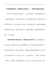 打铁还需自身硬,作风建设永远在路上——领导作风建设发言稿2022年,是*转型发展的关键一年,也是*浴火重生、华丽转身的关键之年。上坡路总是难走的,如果没有逢山开路、遇河架桥的过硬作风,就难以打好转型发展“这块铁”,就不可能创造出叫得响、立得住的新业绩。面对新形势新挑战,顺应新时代新使命,需要新作风新作为。围绕作风建设,我主要谈谈我的几点想法,与各位共勉。一是要冲破制约发展的旧观念,在解放思想上创新争先。观念就是财富,思路决定出路。要想改变口袋,就得改变脑袋。在产业加速转型的关键时期,对我们来说重要的不仅仅是产业的转型,更重要的是思想观念的解放。当今时代,是只争朝夕的时代,慢一步差之千里,误一时...