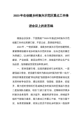 2023年在创建乡村振兴示范区重点工作推进会议上的发言稿