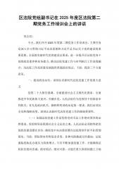 区法院党组副书记在2025年度区法院第二期党务工作培训会上的讲话