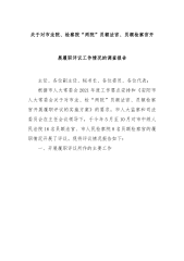 关于对市法院、检察院“两院”员额法官、员额检察官开展履职评议工作情况的调查报告主任、各位副主任、秘书长、各位委员、各位代表:根据市人大常委会2021年度工作要点安排和《安阳市人大常委会关于对市法、检“两院”员额法官、员额检察官开展履职评议的实施方案》的要求,市人大监察和司法委员会在主任会议领导下,于今年5月至10月对市中级人民法院16名员额法官、市人民检察院8名员额检察官的履职情况开展了评议。现将评议情况报告如下:一、开展履职评议所作的主要工作(一)领导重视、周密部署。市人大常委会高度重视履职评议工作,徐家平主任、张保香副主任、桑建业副主任就履职评议工作多次听取汇报、提出意见,要求充分发挥人大...