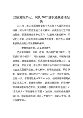 X市中级人民法院机关党委书记上年度机关党建工作述职报告2022年,市中院机关党委在市级机关工委、院党组的坚强领导下,围绕全市工作大局、法院工作中心,以迎接党的XX大、学习宣传贯彻党的XX大为主线,深化党建业务融合,不断提升机关党建服务中心工作实效。中院机关党委被评为2022年度市级机关先进基层党组织,“阳光天平”获评××××年市级机关融合党建最佳服务品牌,市中院被确定为××市首批党建文化示范点、党建现场教学点、全市基层党建工作示范点。一、坚持培根铸魂,坚定法院工作正确政治方向一是强化政治机关建设。深化党史学习教育,扎实开展“深刻领悟‘两个确立’决定性意义,坚决做到‘两个维护’”主题教育。举办全...
