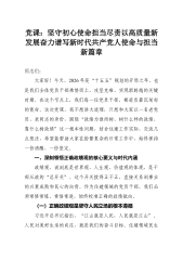党课:坚守初心使命担当尽责以高质量新发展奋力谱写新时代共产党人使命与担当新篇章
