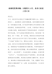 政绩观党课:以如磐初心的政治忠诚如山使命的实干担当,奋力书写新型工业化高质量发展时代答卷同志们:今天,我们召开全局干部廉政警示教育大会,既是推进全面从严治党向纵深发展的规定动作,也是巩固拓展主题教育成果、加强干部队伍思想政治建设的关键举措。立足2026年新的奋斗起点,面对推进新型工业化、建设现代化产业体系的时代重任,我们比以往任何时候都更需要一支政治过硬、作风优良、担当有为的工信铁军。政绩观是党员干部从政、干事、创业的“总开关”,其正确与否,直接关系到党的路线方针政策能否落地生根,关系到工业和信息化事业发展的成效与成色,更关系到人民群众的切身利益和党的执政根基。习近平总书记深刻指出,“树立和践...