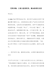 专题党课:严守党规党纪筑牢初心使命同志们:今天,我们在这里齐聚一堂,召开一次专题党课。参加今天党课的有我们社区“两委”班子的全体成员、全体党员同志,还有我们的村民代表。我作为社区的驻村第一书记,想借此机会,与大家共同学习、深入交流,围绕“严守党规党纪,筑牢初心使命”这个主题,谈一些认识和体会。开宗明义,这次党课的目的非常明确,就是要深入学习贯彻习近平总书记关于全面从严治党的重要论述,结合新修订的《中国共产党纪律处分条例》,引导我们每一位党员干部和群众代表,把党的纪律规矩刻在心上、烙在魂上,转化为推动我们XX社区高质量发展、助力乡村全面振兴的强大动力和自觉行动。一、深刻认识纪律建设的极端重要性,...