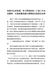 党委书记讲党课:学习贯彻党的二十届三中全会精神,以高质量党建引领推进全面深化改革