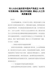 市人大办公室庆祝中国共产党成立104周年党课讲稿:强化作风建设 推动人大工作高质量发展