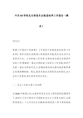 中共XX学校总支部委员会换届选举工作报告(精品)同志们:根据《中国共产党章程》《中国共产党基层组织选举工作条例》等有关规定,经报请上级党组织同意,我们在此召开全体党员大会。大会的核心任务是:全面总结本届总支部委员会的工作,擘画新一届总支部的奋斗目标与工作思路,选举产生新一届总支部委员会,以坚强的组织保证推动我校教育事业发展再攀新高。现在,我受本届总支部委员会的委托,向大会作工作报告,请全体党员同志审议。一、过去三年的主要工作回顾自2022年换届以来,本届学校党总支在上级党委的坚强领导下,始终以习近平新时代中国特色社会主义思想为指引,全面贯彻党的二十大及历次全会精神,特别是深入学习贯彻党的二十届...