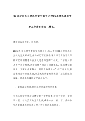 XX县政府办公室机关党支部书记2025年度抓基层党建工作述职报告(精品)尊敬的各位领导、同志们:2025年,在上级党委的坚强领导下,本人作为XX县政府办公室机关党支部书记,始终牢记职责使命,深入学习贯彻习近平新时代中国特色社会主义思想与党的二十大、二十届三中及四中全会精神,紧紧围绕“政治引领强根基、组织建设提效能、党建业务深融合、创新载体激活力”的工作主线,着力推动支部全面建设,为县域高质量发展提供了坚实的组织保障。现将全年履职情况报告如下。一、聚焦政治引领,筑牢绝对忠诚的思想根基支部工作始终将政治建设置于首要位置,致力于锻造一支政治过硬、信念坚定的党员队伍,确保中央、省、市、县的各项决策部署...