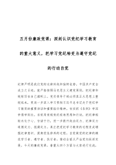 五月份廉政党课:深刻认识党纪学习教育的重大意义,把学习党纪转变为遵守党纪的行动自觉