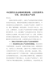 中纪委四次全会精神党课讲稿:以党性修养为引领,深化全面从严治党20250305
