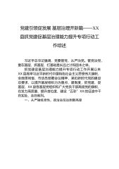 党建引领促发展基层治理开新篇——XX县抓党建促基层治理能力提升专项行动工作综述习近平总书记强调,党要管党,从严治党。管党治党,重在基层,抓基层、打基础是长远之计和固本之举。抓党建促基层治理能力提升专项行动工作开展以来XX县高举习近平新时代中国特色社会主义思想伟大旗帜,全面贯彻省、市动员部署会议精神,紧扣新时代党的建设总要求,以提升基层组织力为重点,建制度,抓党建,促基层,XX县各基层党组织和广大党员干部高扬党的旗帜,在发力高质量、提升首位度、建设“五彩”XX的征途中干在实处、走在前列。一、从严锤炼党性,政治站位达到新高度XX县始终把党的政治建设摆在首位,引导全县基层党建工作沿着正确方向前进。于...
