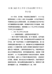 XX镇2023年上半年工作总结暨下半年工作计划2023年来,在市委、市政府的正确领导下,XXX镇全面贯彻党的二十大和二十届二中全会精神,以习近平新时代中国特色社会主义思想为指导,深入贯彻落实习近平总书记视察广东重要讲话、重要指示精神,坚持稳中求进工作总基调,坚定不移贯彻新发展理念,现将我镇2023年上半年工作总结及下半年工作计划报告如下:一、2023年上半年工作总结(一)聚焦抓党建促引领,党的建设持续提升一是学深悟透明方向。紧紧围绕党的二十大及一中、二中全会精神、省委十三届二次全会、某市委十二届四次全会、某市委十四届五次全会精神,掀起学习贯彻热潮,领导班子率先学、党员干部带头学、全镇上下全面学...