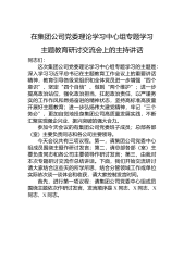在集团公司党委理论学习中心组专题学习主题教育研讨交流会上的主持讲话同志们:这次集团公司党委理论学习中心组专题学习的主题是:深入学习习近平总书记在主题教育工作会议上的重要讲话精神,教育引导各级党组织和全体党员进一步增强“四个意识”、坚定“四个自信”、做到“两个维护”;进一步提高政治站位,强化政治担当,扛起政治责任,以严谨务实的工作作风和昂扬奋进的精神状态,坚持高标准高质量开展好主题教育;进一步弘扬伟大建党精神,牢记“三个务必”,更加自觉地投身集团公司高质量发展实践,不断汇聚实现强企兴业、振兴突破的强大合力。参加今天会议的有集团公司党委班子成员;总部各部(室)主要负责同志和各公司主要领导。今天会议...