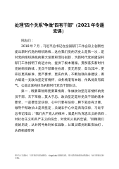 办公室党课上的讲稿:坚定信心迎难而上,以高质量工作助推全市经济社会高质量发展各位党员,同志们:今年是现代化建设进程中具有特殊重要性的一年,是实施“十四五”规划、开启全面建设社会主义现代化国家新征程的第一年,也是建党100周年。政府办公室作为一个地市的综合协调部门,地位重要、非常辛苦、事务繁杂、难度很大,更要率先垂范,第一时间学习、谋划、落实中央、省、市和特市的决策部署,成为政府系统学习的榜样。当前,全市经济运行有喜有忧,面临的发展形势严峻,对政府办公室做好新形势下“三办”“三服务”提出了更高要求。习近平总书记、李克强总理高度重视办公厅工作。习近平总书记提出了“五个坚持”的重要要求,李克强总理多...